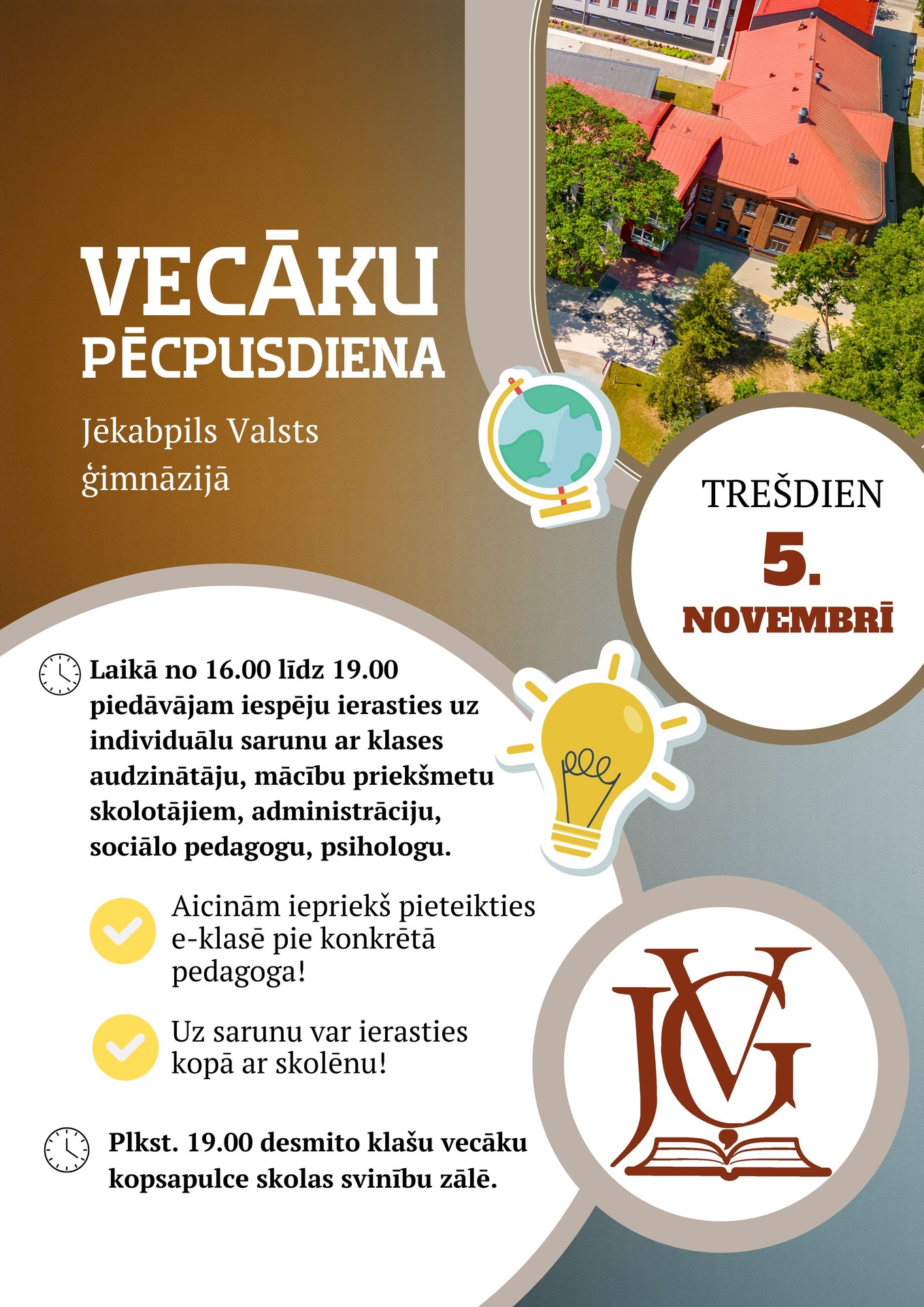 Tāpēc 05.11. Jēkabpils Valsts ģimnāzijā būs vecāku pēcpusdiena.