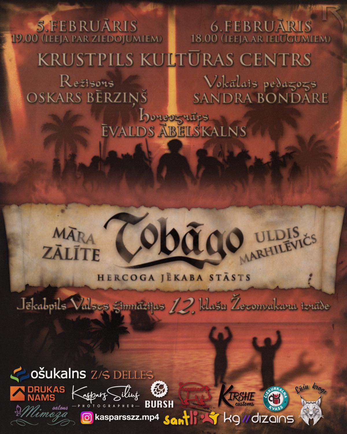 Ar prieku paziņojam, ka 2026. gada izlaiduma klase, režisora Oskara Bērziņa vadībā, 20 gadus pēc pirmā JVĢ iestudējuma, piedāvā atkalsatikšanos ar skaisto Māras Zālītes un Ulda Marhilēviča izrādi “TOBĀGO”.