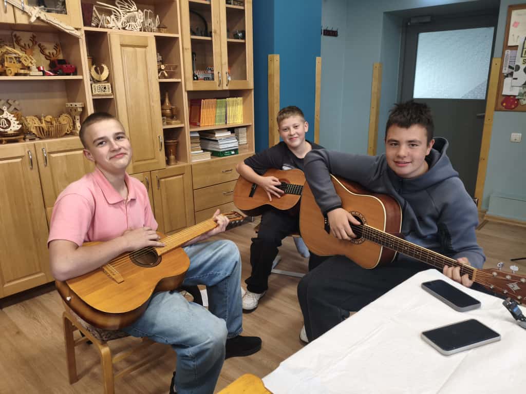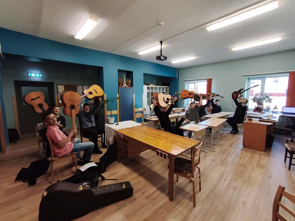 Tie, kas pagājušajā gadā ģitāru spēlēt ir iemācījušies, šogad ir liels atbalsts skolotājam, jo palīdz sniegt praktiskās zināšanas jaunpienācējiem. Kāds nāk ar savu ģitāru, kādam skolotājs piešķir ģitāru no sava arsenāla, bet neviens bez instrumenta nav atstāts.