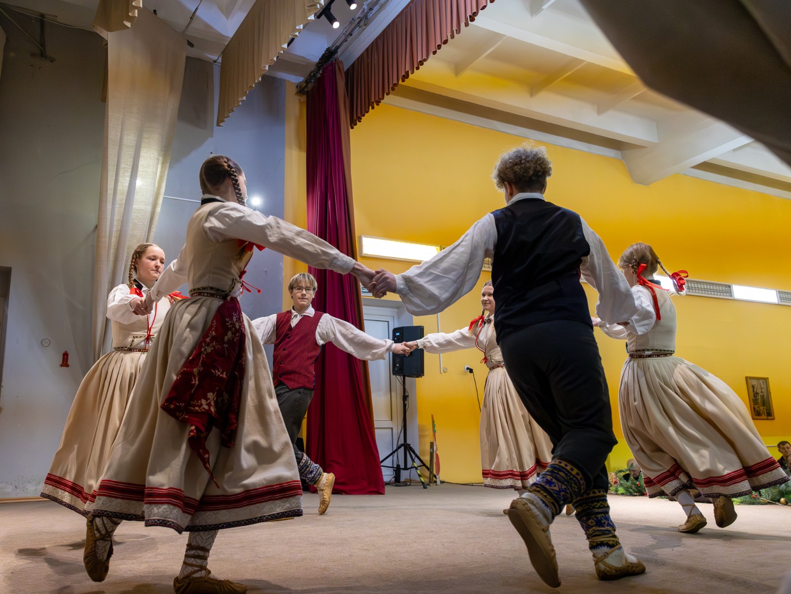 Neskatoties, ka gan skatuve ir samērā neliela, un mūsu kuplajam dejotāju pulciņam diezgan šauri atvēlētajā ģērbšanās telpā, koncerts tiešām paiet lielā sirsnībā un saticībā, draudzīgi plecu pie pleca pārvarot visas koncerta norises un pašās beigās kā vienmēr vienojoties kopīgā dziesmā.