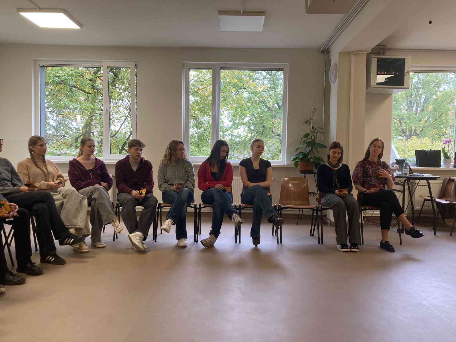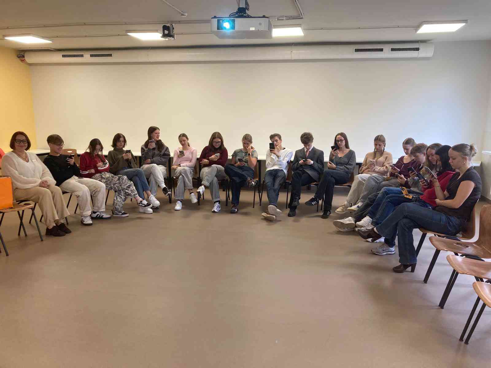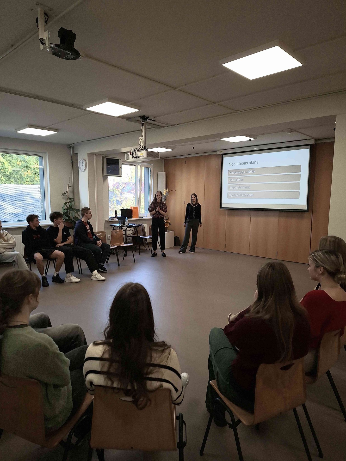 ![]() | 12.b, 11.b, 11.c un 11.d klašu skolēniem bija iespēja noklausīties stāstījumu par labbūtības jēdzienu un, pašiem praktiski darbojoties, izskaidrot sev tuvo labbūtības faktoru skolā. Pēc tam skolēni sniedza atbildes uz sagatavotajiem anketas jautājumiem, kas tiks izmantoti pētnieciskā darba rezultātu iegūšanai. |