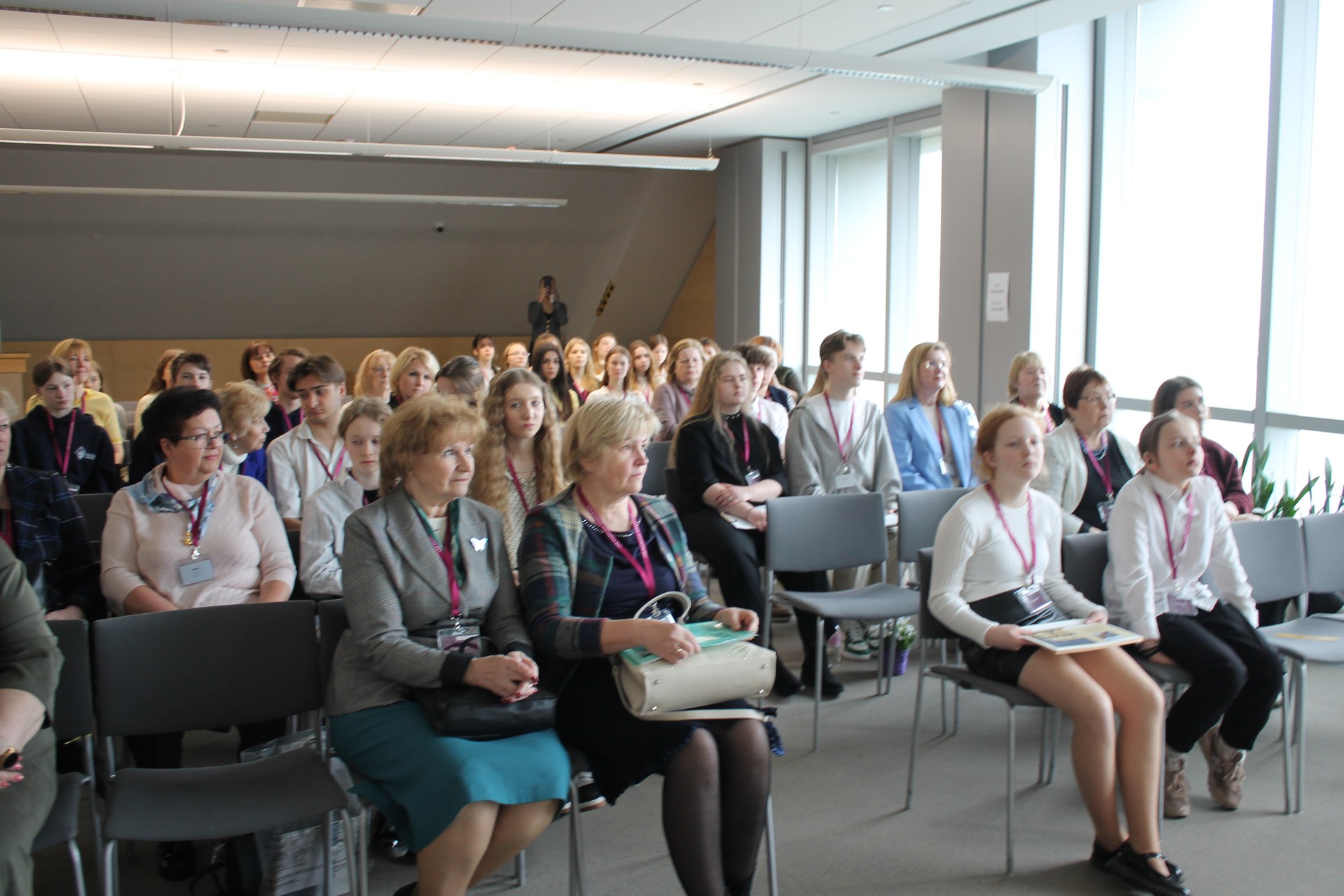 ![]() | Dienas laikā bija iespēja uzzināt par citu skolu nozīmīgajām grāmatām un to vēsturi, noklausīties Speciālo krājumu departamenta direktores Marikas Selgas izglītojošo lekciju, kā arī doties ekskursijā pa Latvijas Nacionālo bibliotēku. Ance Bicāne no 11.b stāsta: "Man kā atbalsta grupai, bija interesanti klausīties par dažādām grāmatām un dzirdēt mūsu skolas meiteņu prezentāciju." Evelita Kristapsone no 11.c uzsver: "Visvairāk mani aizkustināja divas meitenes no Rīgas Ēbelmuižas vājdzirdīgo skolas, kuras paralēli savam stāstījumam izmantoja zīmju valodu." |