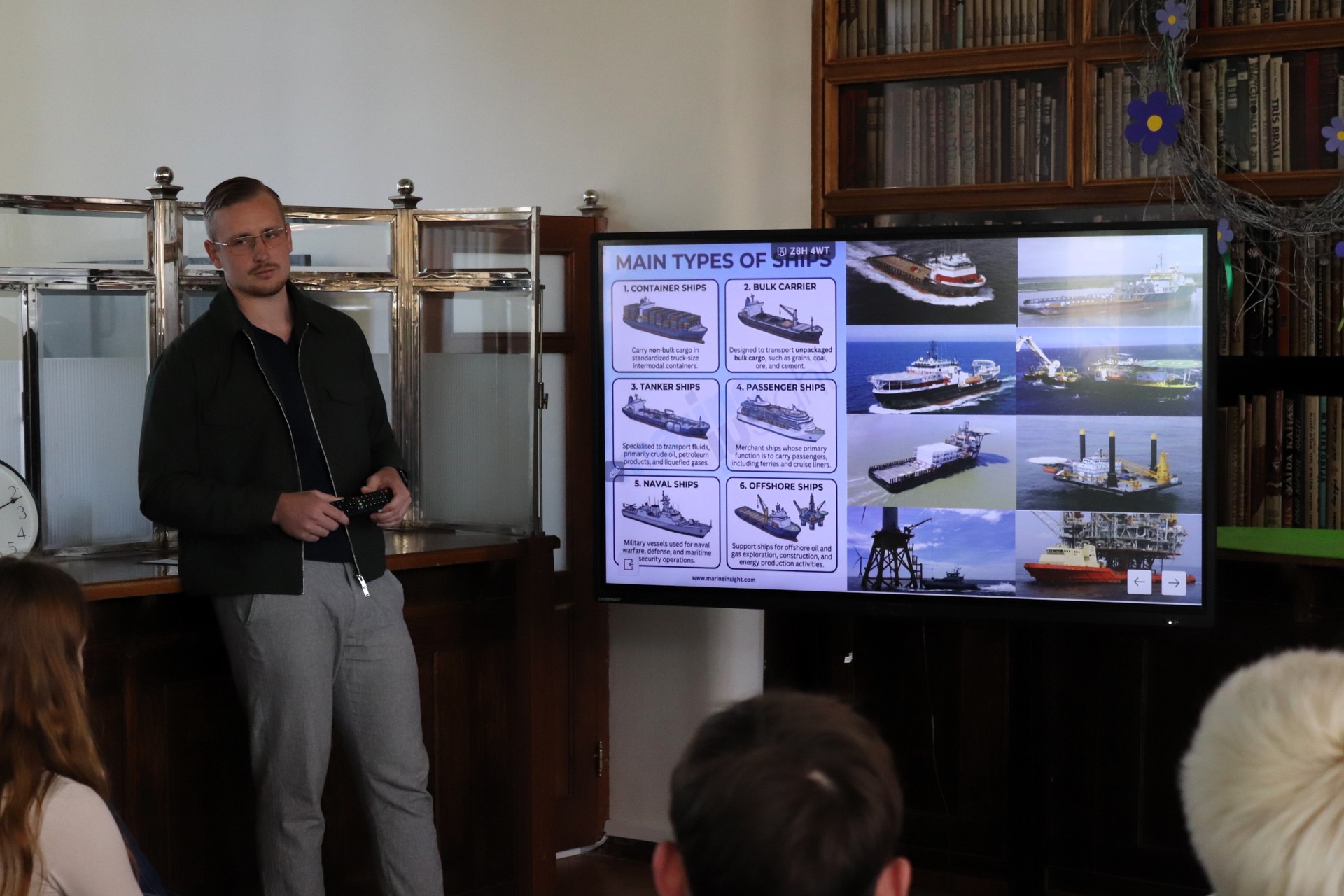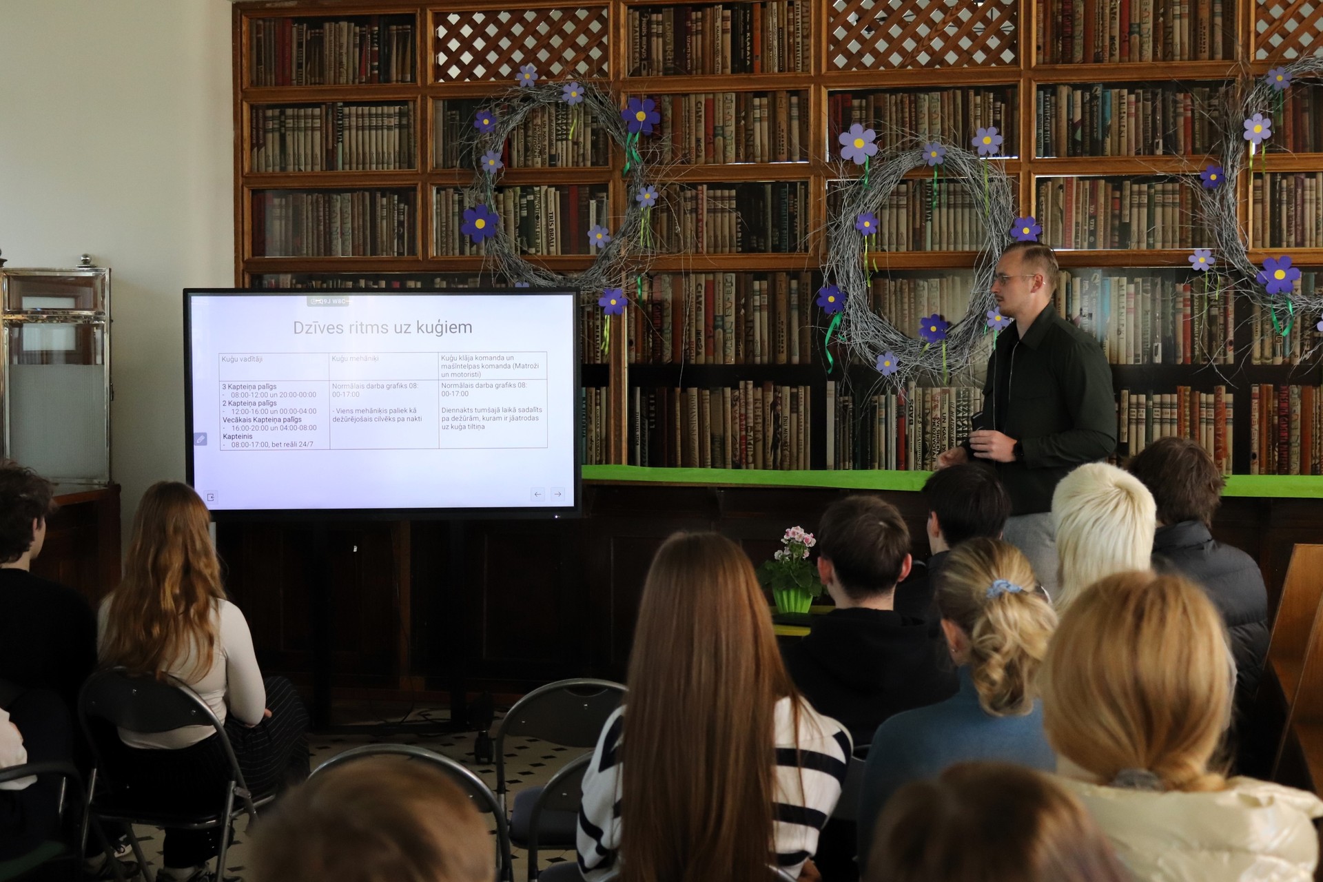 Elvija stāsts par studijām Latvijas Jūras akadēmijā un par jūras braucieniem pāri visiem pasaules okeāniem līdzinājās pasakai ar neticamiem piedzīvojumiem. Jūrnieka dzīve šķiet romantiska un aizraujoša, tomēr Elvijs runāja arī par to, cik daudz grūtību un izaicinājumu ir šajā darbā. Skolēni uzzināja daudz ko par studijām Jūras akadēmijā, par jūrnieka ikdienu. Jauniešiem bija daudz jautājumu par kuģa vadītāja profesiju un par studijām. |