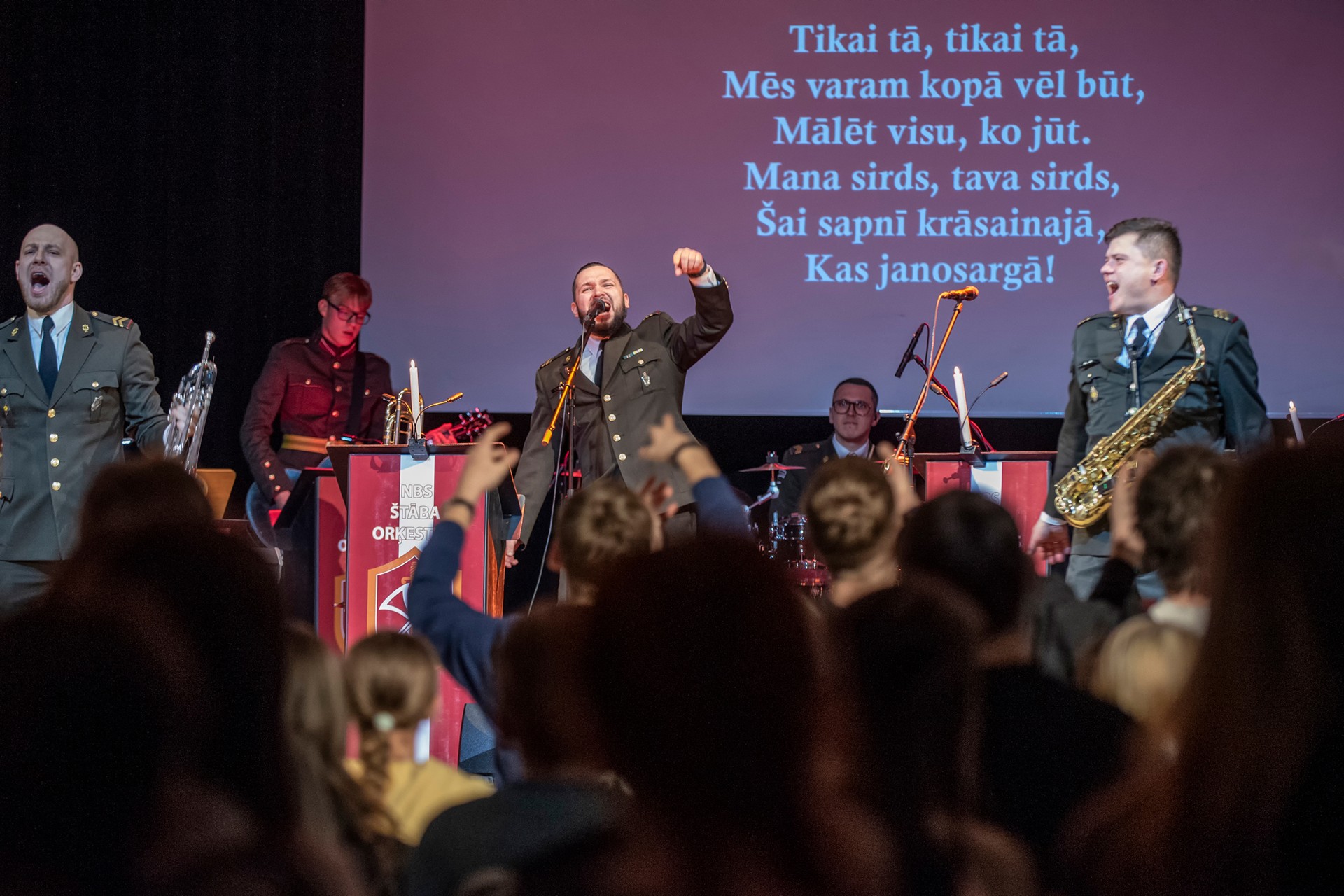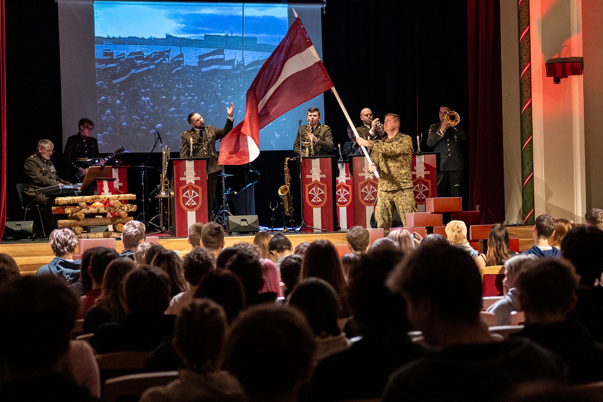 Janvāris Latvijas vēsturē iezīmējas ar notikumiem, par kuriem ikkatrs no mums var lepoties ar apbrīnojamu tautas vienotību un spēku, kas valdīja tālajā 1991. gadā barikāžu cīņās! Lai pieminētu un godātu mūsu Valsts aizstāvjus, NBS Štāba orķestra estrādes ansamblis ir sagatavojis īpašu koncertprogrammu "Uzcelsim Latviju kopā", ar kuru dodas pie skolēniem. Ansambļa dalībnieki priecēja ar tautai zināmām patriotiskām dziesmām un stāstiem, iepazīstināja ar vēsturisko notikumu gaitu un aicināja cienīt un mīlēt Latviju ne tikai savā zemē, bet arī nest un celt tās vārdu tālāk, plašajā pasaulē!