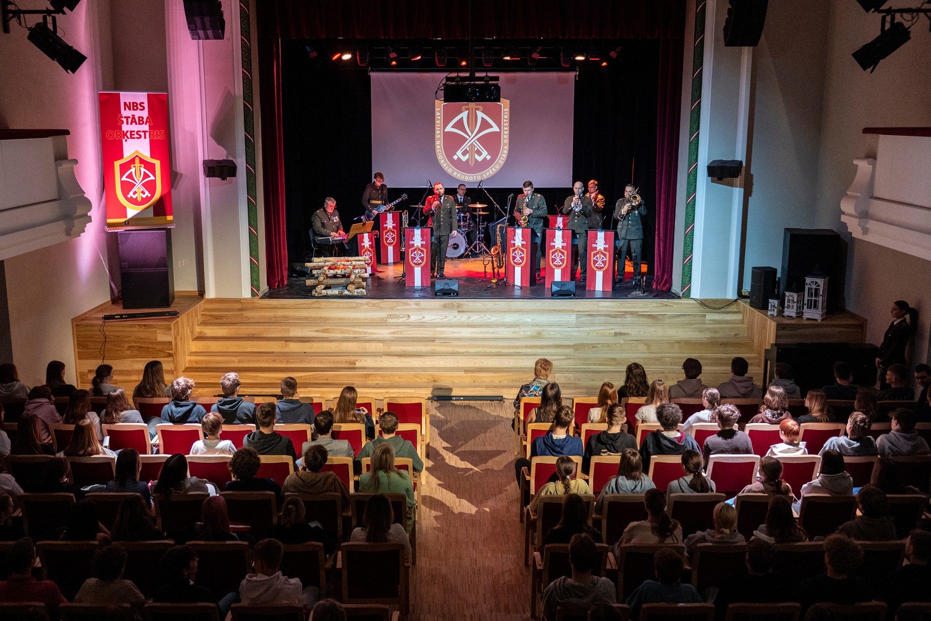 Jēkabpils Valsts ģimnāzijas pamatskolēni 28. janvārī apmeklēja NBS Štāba orķestra estrādes ansambļa koncertu "Uzcelsim Latviju kopā!", kas norisinājās Jēkabpils Tautas namā.
