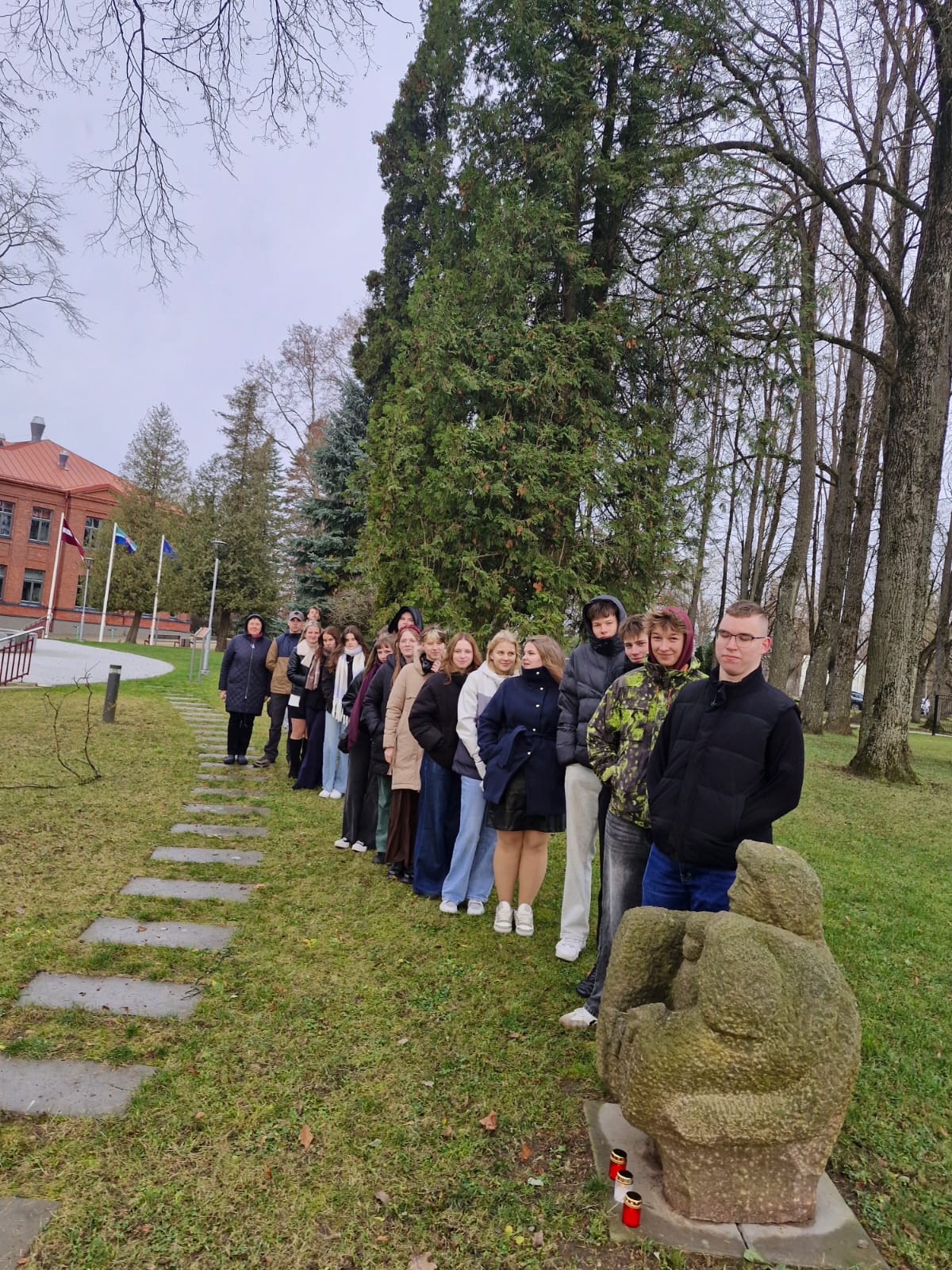 ![]() | 11.c klases skolēni Beatrise Ieleja un Linards Meijers patriotisma nedēļas laikā par to stāstīja arī skolas radiopārraidē. Jau decembrī mūsu skolas stāsts būs redzams virtuālajā izstādē “Paldies par Latviju. Notikumi un cilvēki mūsu valsts vēsturē”, ko organizē Skolu muzeju biedrība. Informāciju apkopoja skolotāja Stella Mekša (skolas 1980. gada absolvente) | |